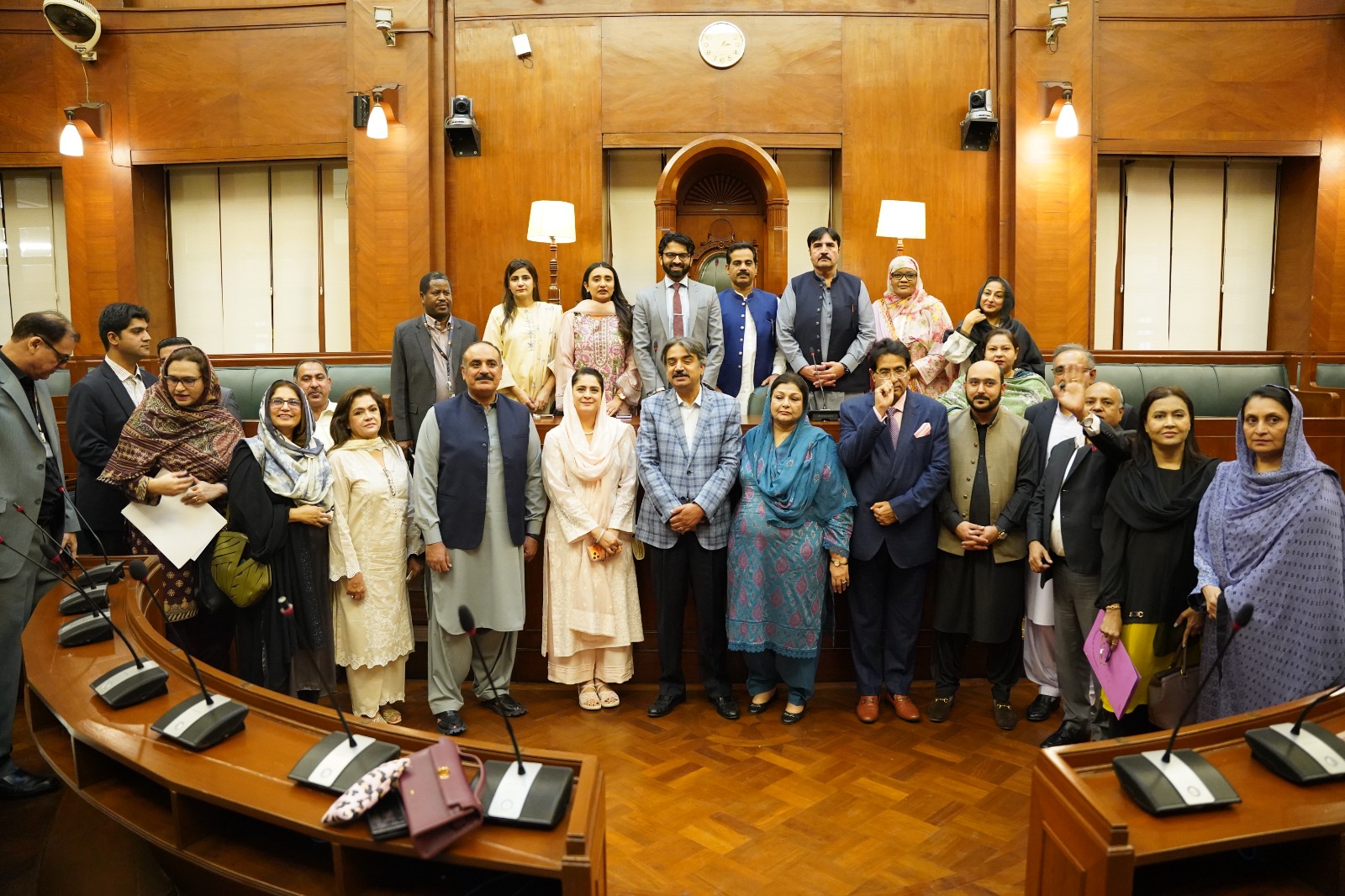 Speaker Syed Awais Qadir Shah and Deputy Speaker Anthony Naveed welcomed the Punjab Assembly delegation and briefed them during a tour of the new Assembly building.