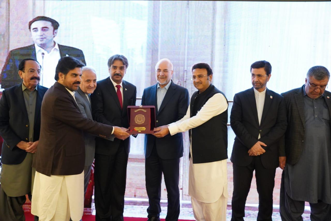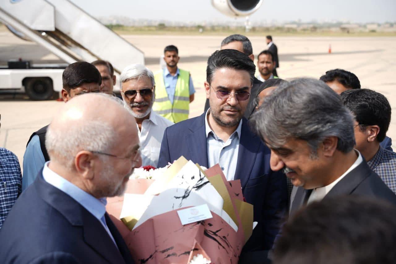 Speaker Provincial Assembly of Sindh, Syed Awais Qadir Shah, warmly received the Honorable Speaker of the Islamic Parliament of Iran, Dr. Mohammad Bagher Ghalibaf, upon his arrival at Jinnah International Airport, Karachi.