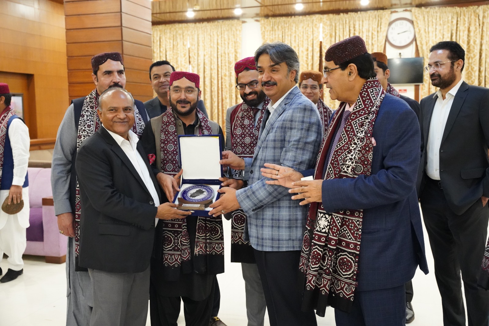 The Punjab Parliamentary Unit presented a shield to Speaker Syed Awais Qadir Shah and Deputy Speaker Anthony Naveed.