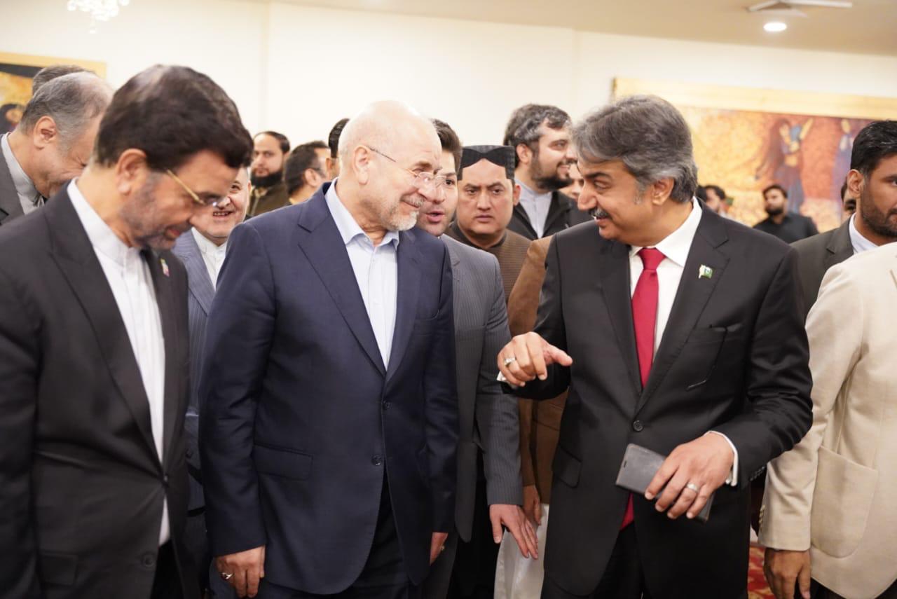 Speaker Provincial Assembly of Sindh, Syed Awais Qadir Shah, warmly received the Honorable Speaker of the Islamic Parliament of Iran, Dr. Mohammad Bagher Ghalibaf, upon his arrival at Jinnah International Airport, Karachi.
