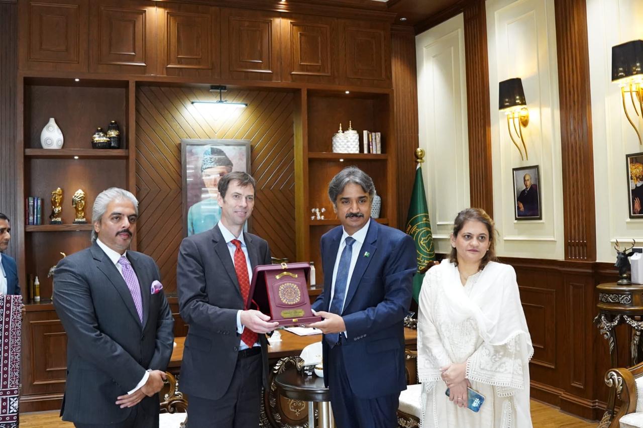 Deputy High Commissioner of the United Kingdom in Karachi, Mr. Lance Domm, paid a courtesy call on the Honorable Speaker of the Provincial Assembly of Sindh, Syed Awais Qadir Shah, at the Sindh Assembly today.