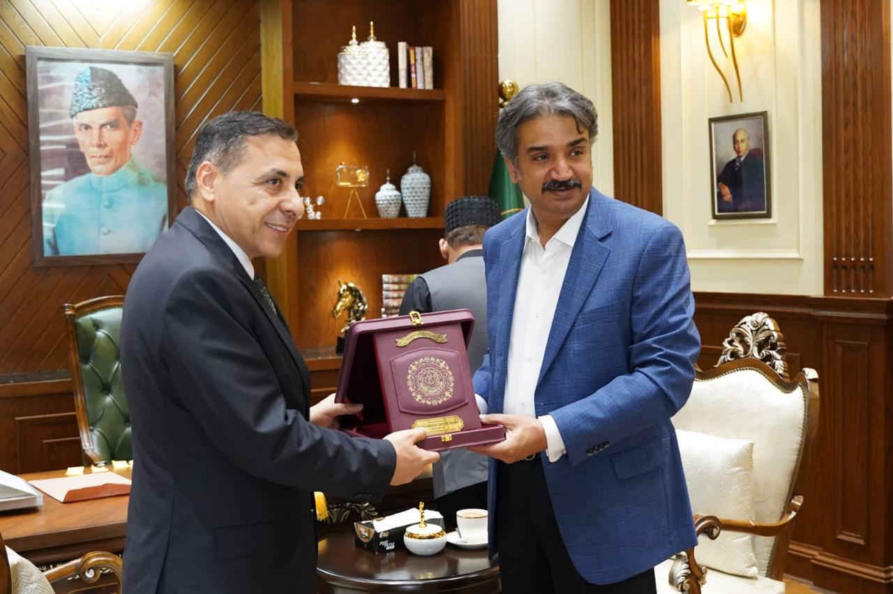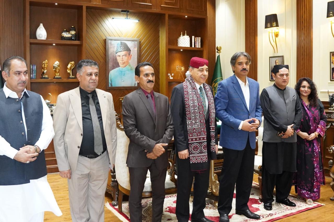عراق جي قونصل جنرل ڊاڪٽر ماھر مجاھد جيجان جي سنڌ اسيمبلي جي اسپيڪر سيد اويس قادر شاهه سان سنڌ اسيمبلي ۾ ملاقات